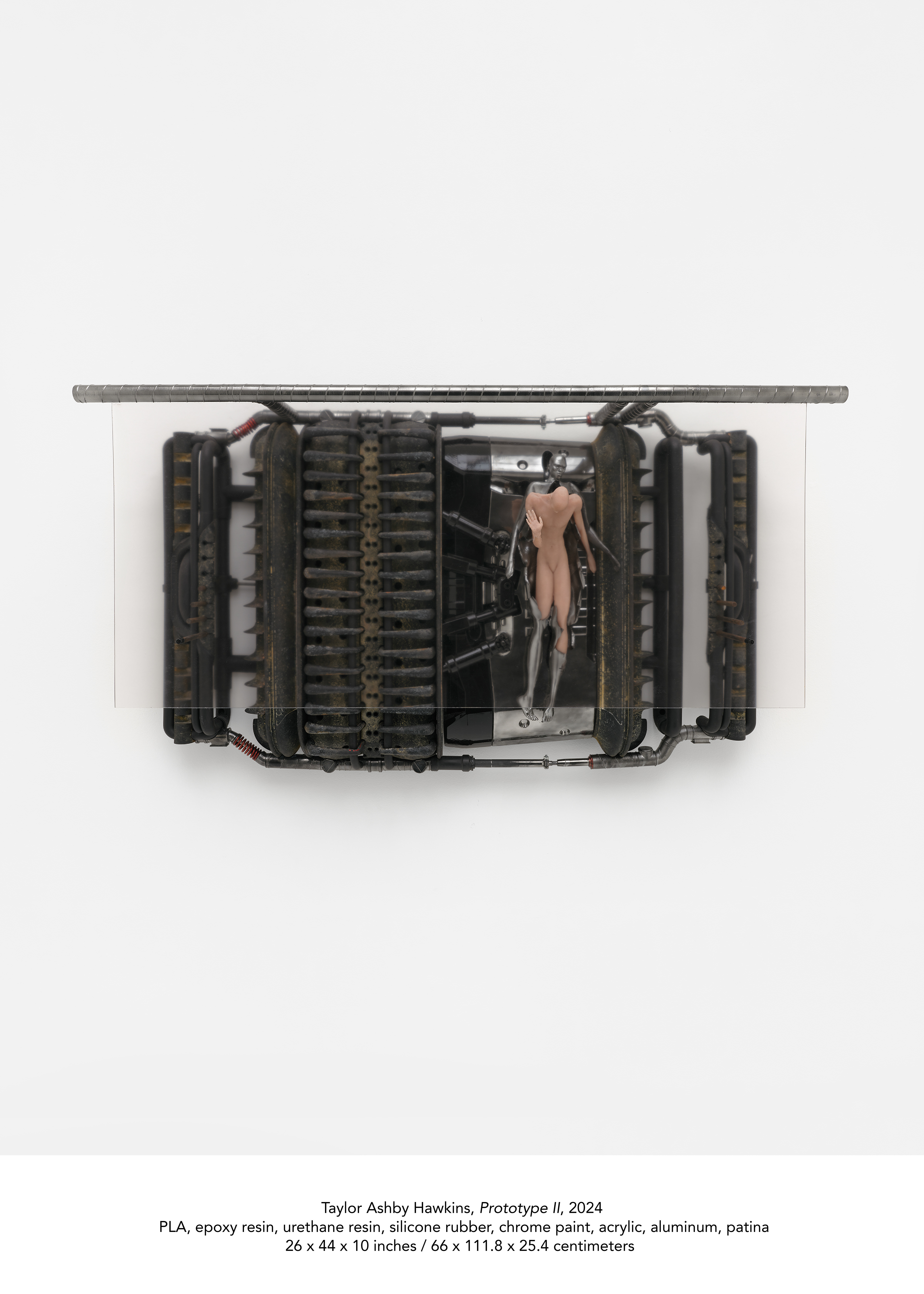 Here is an exhibit for this case, an argument to surrender to the imminent singularity of our making. And with these sculptures being composed of such familiar materials—like antiquated car engines dated only by the wear of their use—that singularity is already taking place now. Stop our writhing and suddenly: How refreshing the metal feels as it pulls the bodies back into alignment. How lightly the figure pushes upon the silicone rubber, careful not to tear through its latex-like membrane. The ascension of the human-being from its liquid metallic casing—gentle, so that its details are remembered in the maintenance of its form. These structures expose their underbellies, and gamble with their insides.