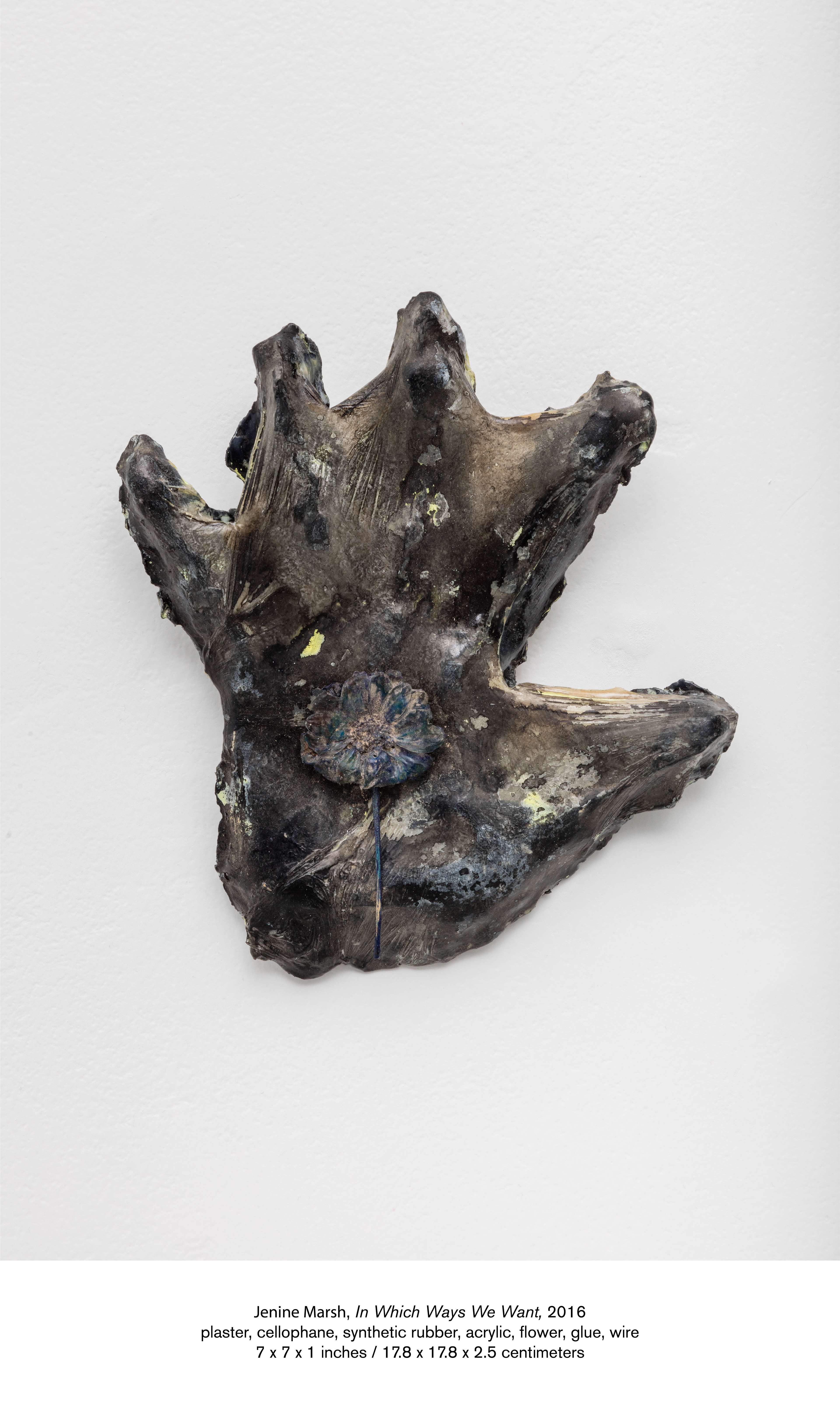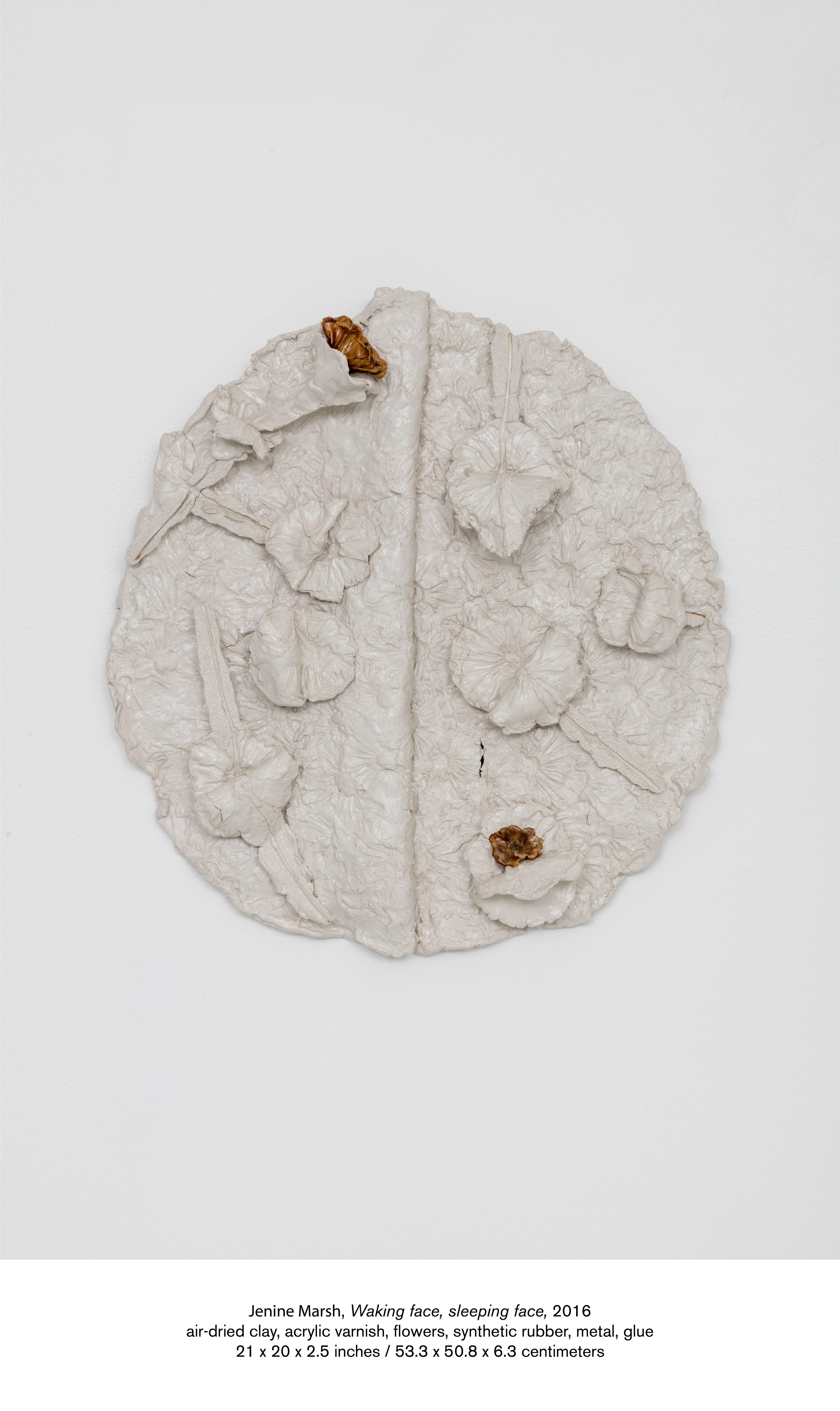 Jenine Marsh (born 1984; Calgary, AB) lives and works in Toronto, ON. Recent solo and group exhibitions include: The Extrovert, Cooper Cole Gallery (Toronto, ON), A Change of Heart (curated by Chris Sharp), Hannah Hoffman Gallery (Los Angeles, CA), and feminine marvelous and tough, Lulu (Mexico City, MX).