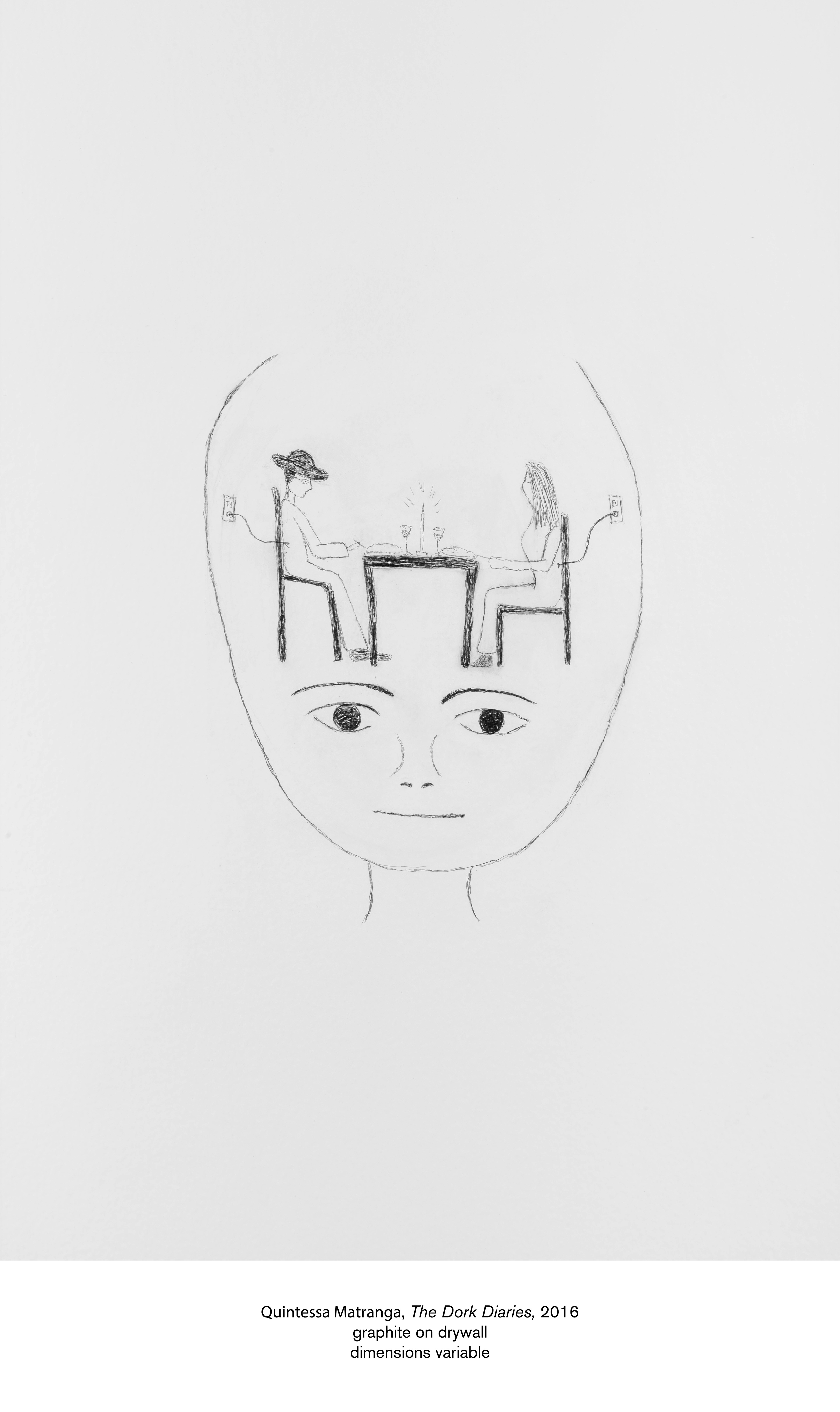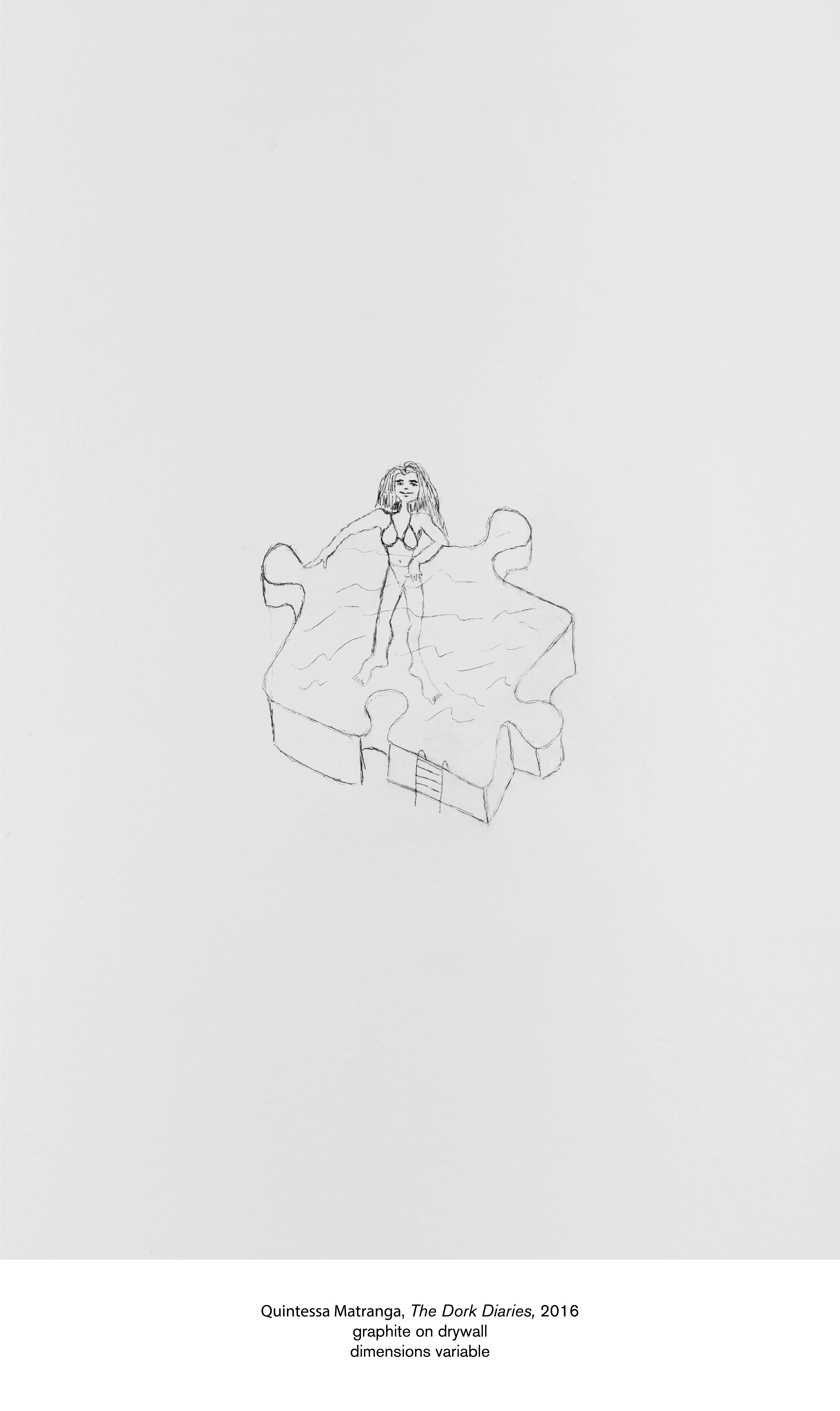 Quintessa Matranga (born 1989; New York, NY) lives and works in New York, NY. Recent solo and group exhibitions include: My Celebrity Crush, Boyfriends (Chicago, IL), Screaming in a Cage in Hell, Sydney (Sydney, AU), and Cure Cruelty, Kunsthalle Wichita (Wichita, KS).