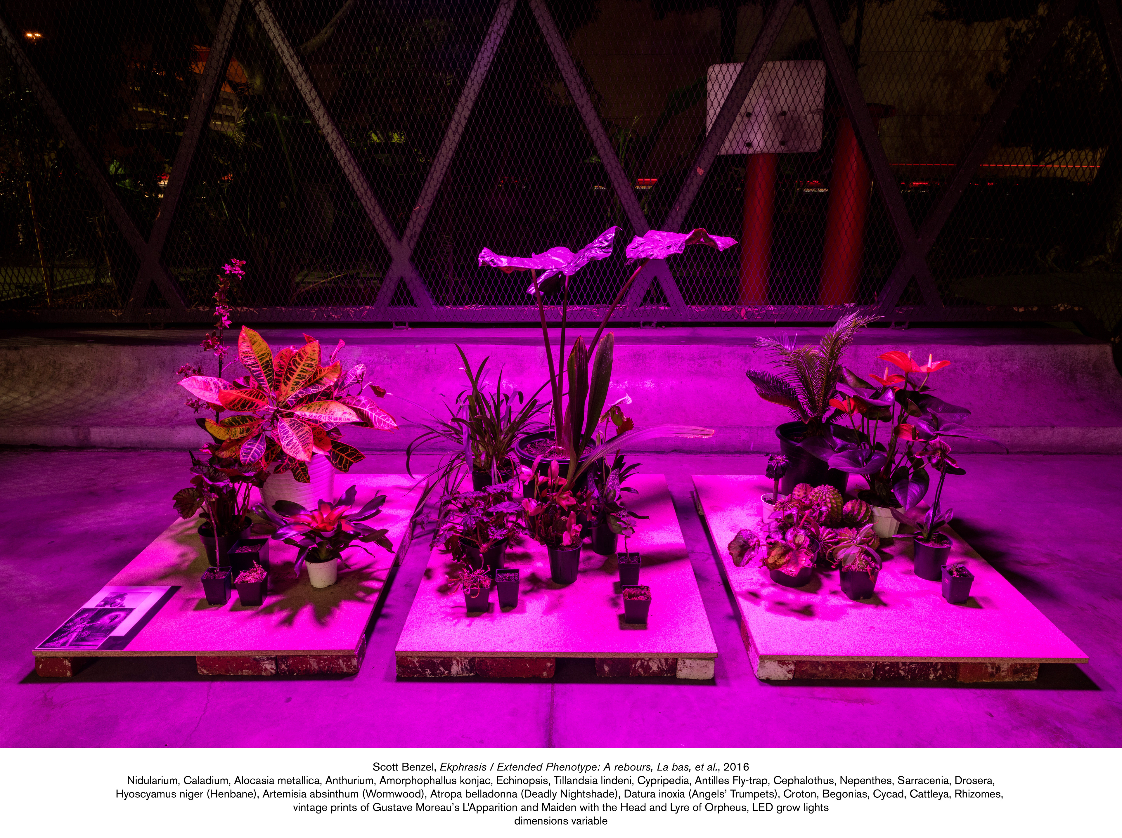 On view in LA/DW~PS is Scott Benzel’s Ekphrasis / Extended Phenotype: A rebours, La bas, et al. (2016).