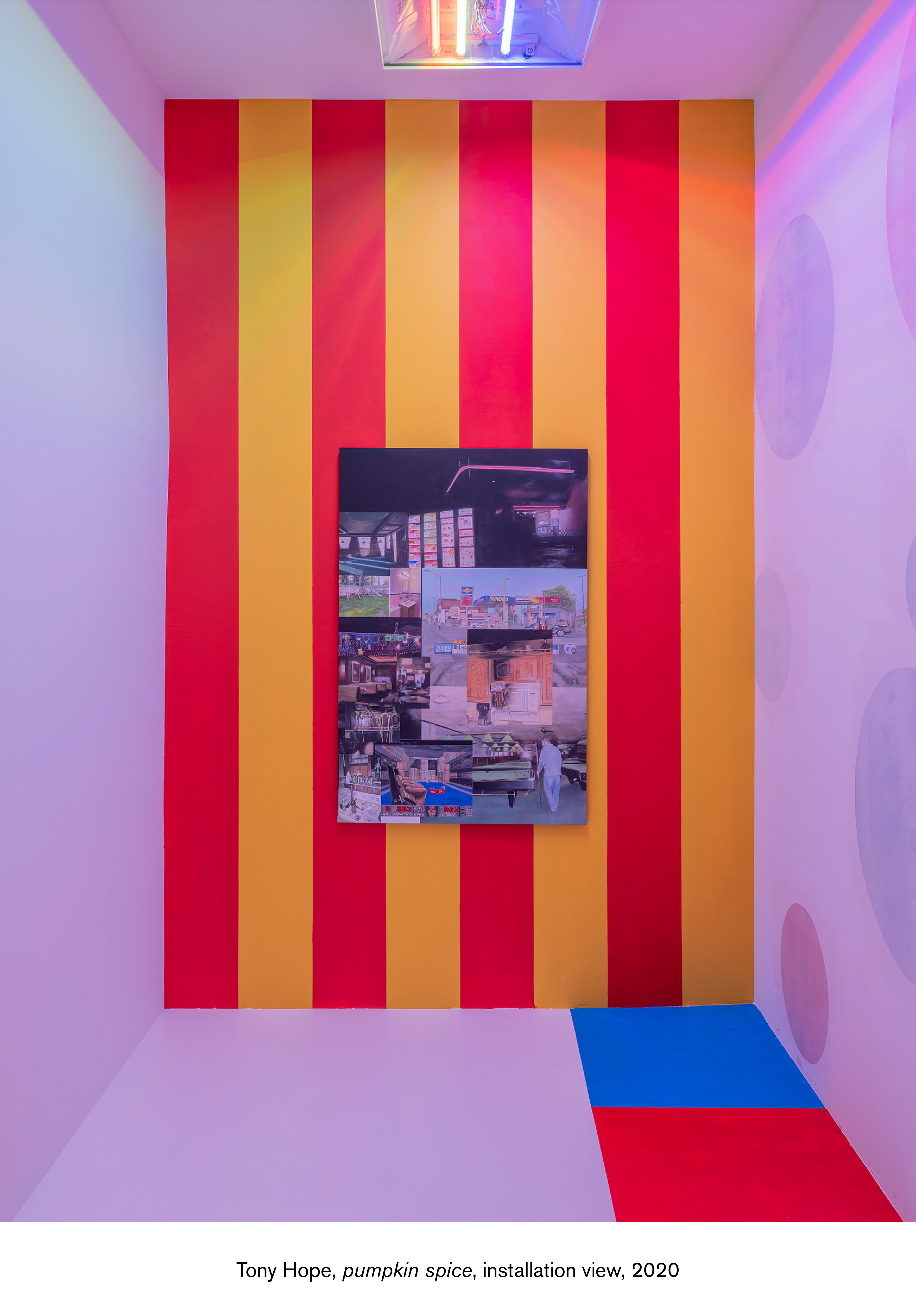 ASHES/ASHES is pleased to present pumpkin spice, Tony Hope’s third solo exhibition with the gallery. The exhibition will be on view September 11 – October 25, 2020 with an opening on Friday, September 11th from 4–8pm.